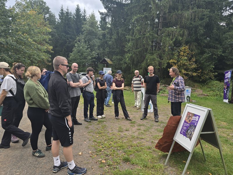 Die Moderation des Besucherprogramms vor Ort übernahm Silvia Reyer-Rohde, Leiterin des Managementbüros des Geoparks. Zahlreiche Mitarbeitende des Geoparks sowie Vertreterinnen und Vertreter des Forschungsprojektes BROMACKER standen den Gästen für Fragen und Informationen zur Verfügung.